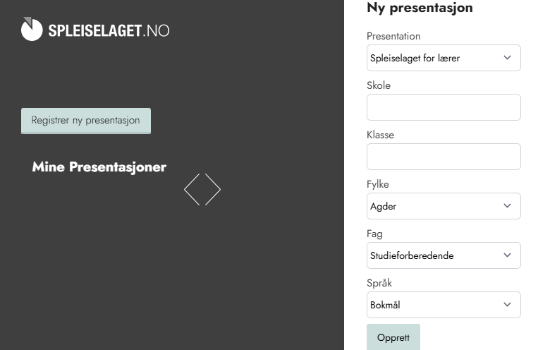 - Feltet Presentasjon er forhåndsutfylt med Spleiselaget for lærer